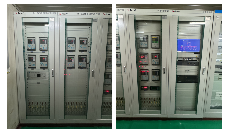 線(xiàn)路保護(hù)屏按照10kV分段原則,分為兩面屏柜,1#10kV線(xiàn)路保護(hù)測(cè)控屏上4臺(tái)線(xiàn)路保護(hù)AM5SE-F,2#10kV線(xiàn)路保護(hù)測(cè)控屏上4臺(tái)線(xiàn)路保護(hù)AM5SE-F加1臺(tái)利舊的小電流接地選線(xiàn)裝置。