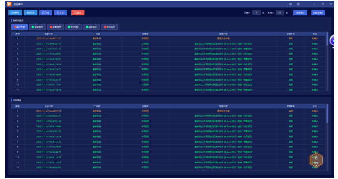 1)事故報(bào)警。事故狀態(tài)方式時(shí),事故報(bào)警立即發(fā)出音響報(bào)警(報(bào)警音量任意調(diào)節(jié)),操作員工作站的顯示畫(huà)面上用顏色改變并閃爍表示該設(shè)備變位,同時(shí)彈窗顯示紅色報(bào)警條文,報(bào)警分為實(shí)時(shí)報(bào)警和歷史報(bào)警,歷史報(bào)警條文具備選擇查詢(xún)并打印的功能。